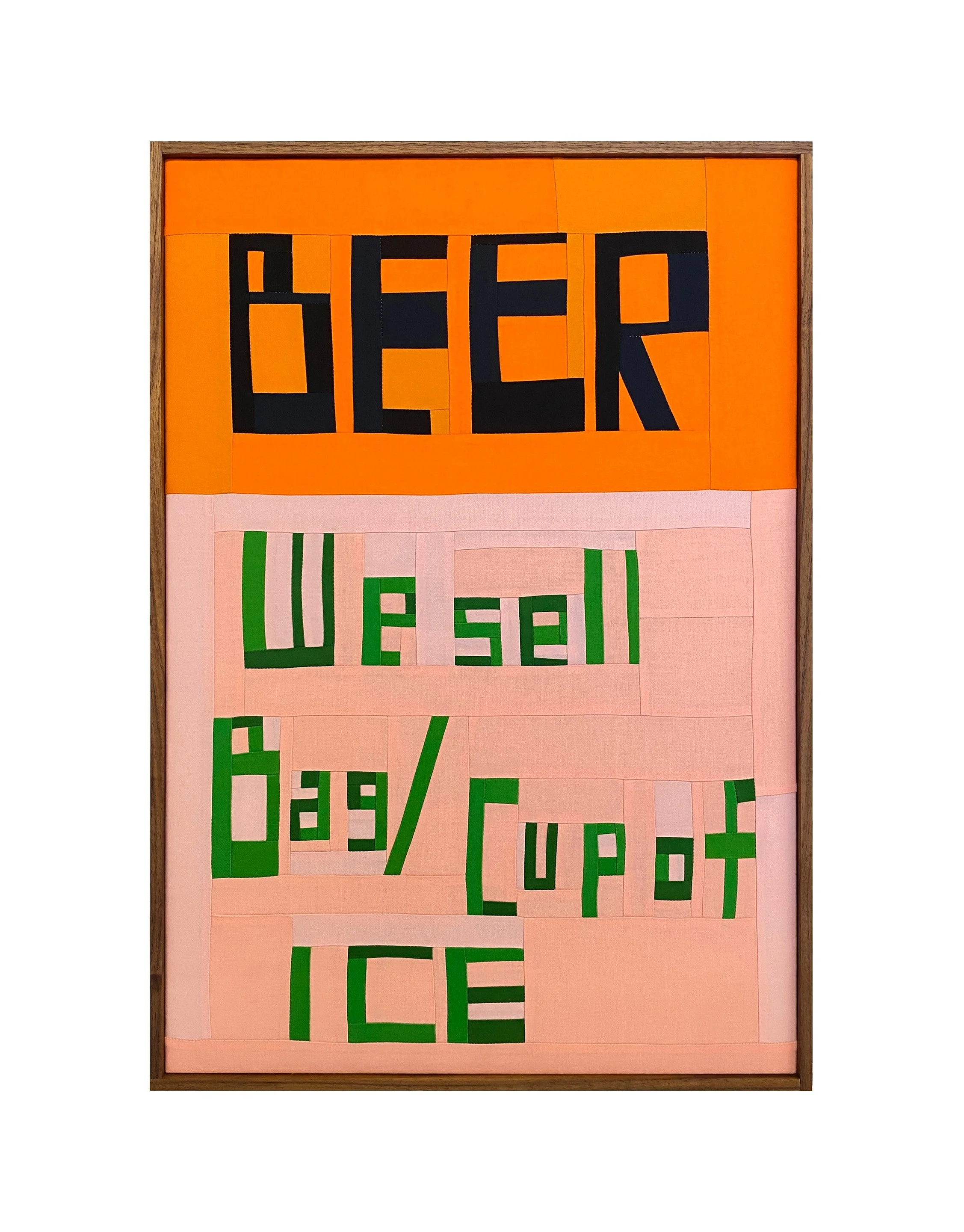 For FOG Design + Art 2026, Charlie James Gallery is pleased to present a solo presentation of new works by San Francisco based artist Jeffrey Sincich. Sincich draws inspiration from the built landscape: signs, murals, and advertisements are transformed into idiosyncratic quilted compositions that emphasize the handmade quality of much of the urban landscape. Sincich captures this in meticulously pieced and quilted works, stretched and finished with artist’s frames.